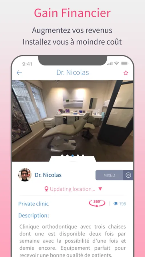 • Book your rentals of practices or professional premises that interest you and work with a colleague on your own or not, with your patient base or not.