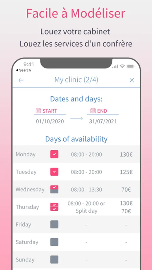 Live your activity as a health professional (medical, dental and paramedical) differently with Coclinic. Discover new places to work, where to complement your activity, where you forge new professional experiences. Easily find your next business hire, book quickly on your schedule, and work where you want when you want. Install yourself inexpensively, flexibly and without commitment, then supplement your income by becoming a firm holder in your turn.