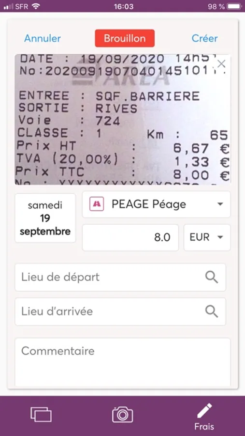 Grâce à CarlaPic, créez automatiquement vos frais à partir d’une simple photo de vos justificatifs (mono-page ou multipages).