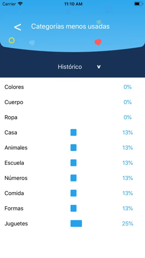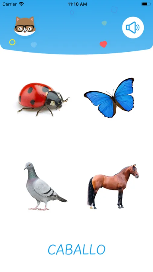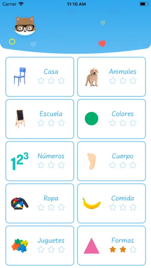 • 10 temáticas diferentes: animales, cuerpo, ropa, colores, comida, casa, números, escuela, formas y juguetes.