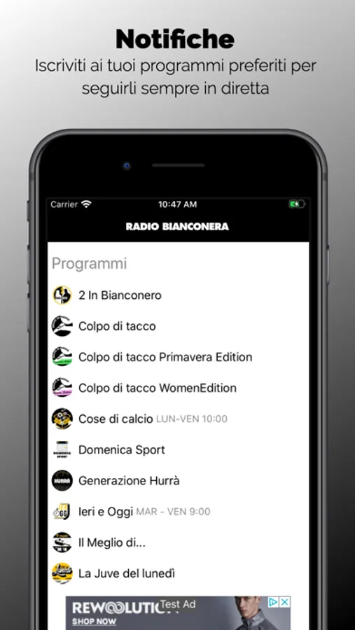 - la possibilità di rimanere sempre informato sull'inizio delle trasmissioni con le notifiche push.