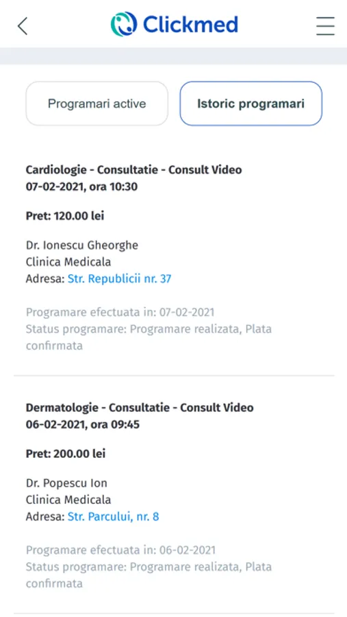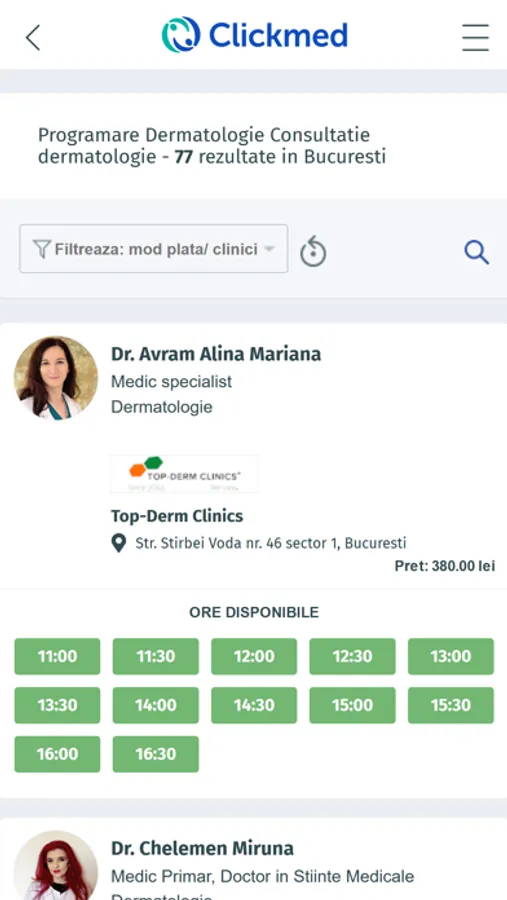 Utilizeaza gratuit serviciul Clickmed pentru programarile tale la medic. Instaleaza aplicatia si ai acces rapid la programul a mii de medici pentru programare la orice ora, 24x7 pentru tine sau cei dragi.