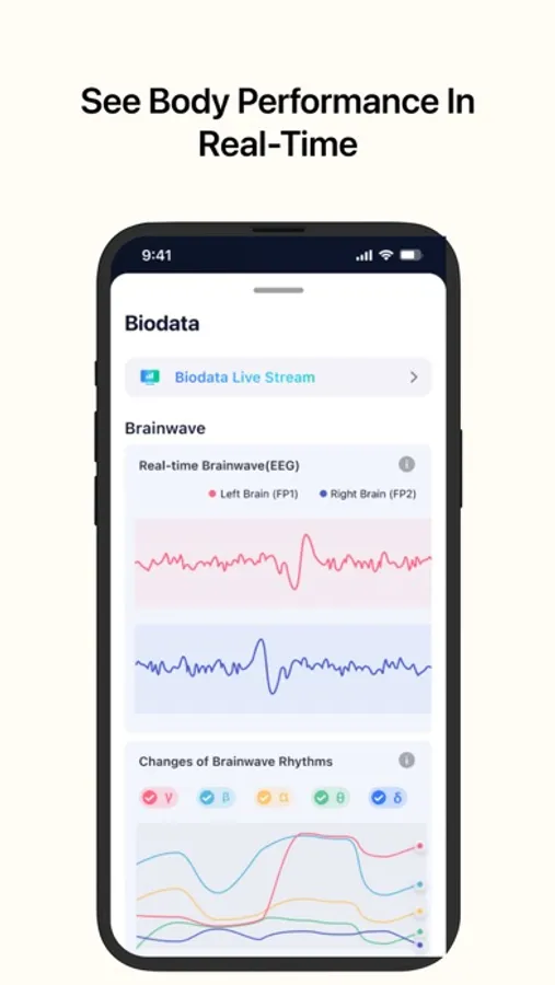The real-time data matters when you are doing meditation, while rich biodata reports after practice are also crucial to measuring your practice every time and insights into your progress. The sensors passively sense your brain and heart activities, and the app translates them into visualized graphs of your body performance. You will be eager to see how well you perform after you practice.
