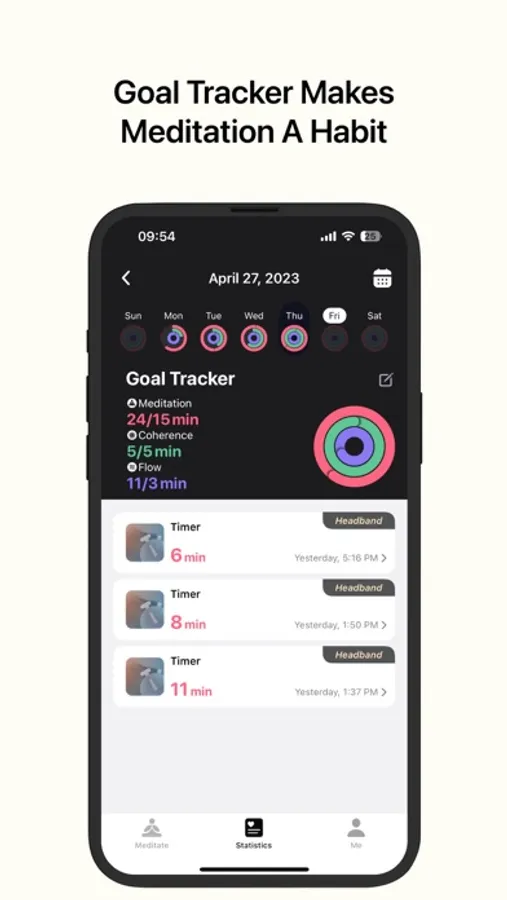 Tracking your goals daily makes meditation feel more real and less like an abstract, unattainable concept. It's a small step that can really make a difference in achieving your goals. Every minute you practice counts automatically towards closing the ring.