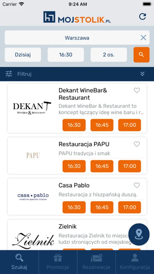 MojStolik is the leader in restaurant reservations in Poland. At the moment the service is provided in Warsaw, Poznan and Konin.