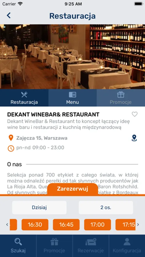 Search and explore restaurant menus, tables availability and interior design. Make reservation in just a few seconds. Manage your reservations, change them and cancel with just one click!.