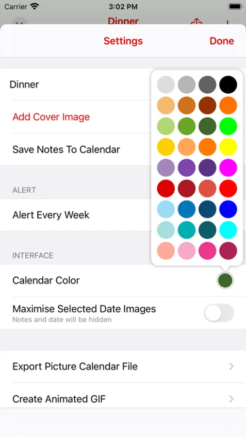 Add color and progress to dates by tapping and holding on a date, or mark it as a repeating event.