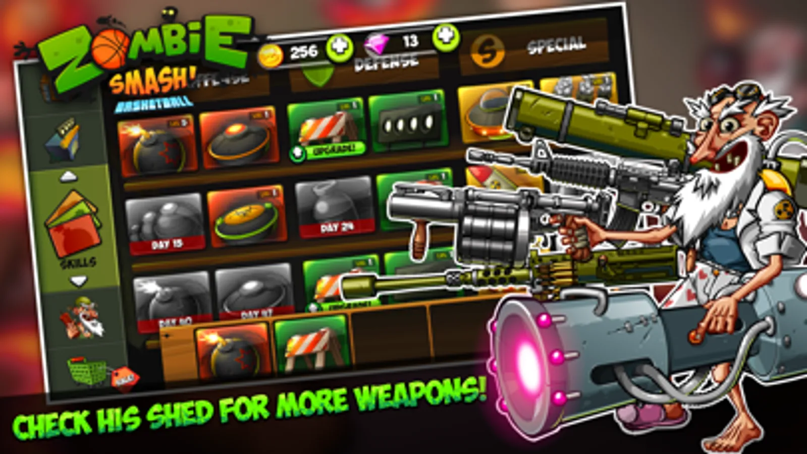 Save up energy, throwing the ball and strike at enemies! Dozens of weapons with the most unexpected features will help you take down brain hunters! Stop, freeze, explode, SQUASH zombies! Make them blow to pieces!