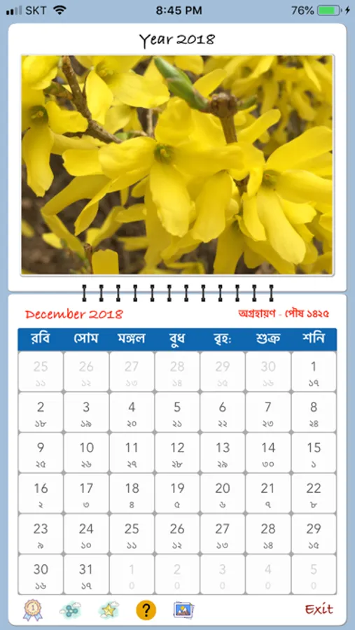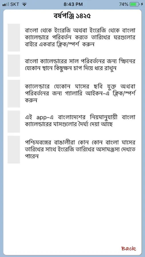 This application shows the traditional Bengali & Georgian calendar which is mostly followed in Bangladesh and India. The different consideration for calculating the date such as the rules before 1989 and after that year are also differentiated during the calendar calculation. Please note that we have followed the rules from Bangladesh for this calendar. So, people from West Bengal, India may find it different than their Bangla calendar.