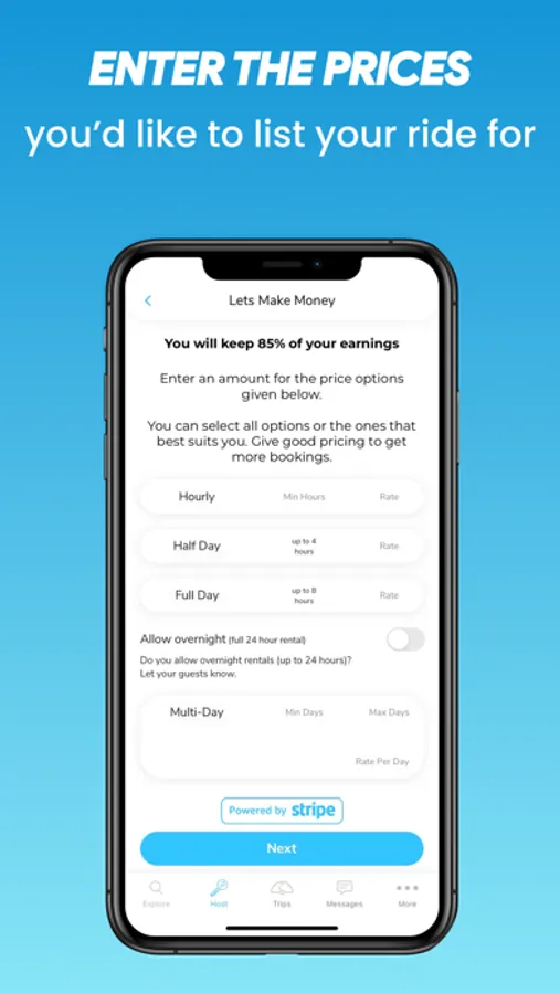 Share your ride without any charges or monthly fees. Full flexibility with extras, advance features, availability and more. Set your pricing, accept booking and