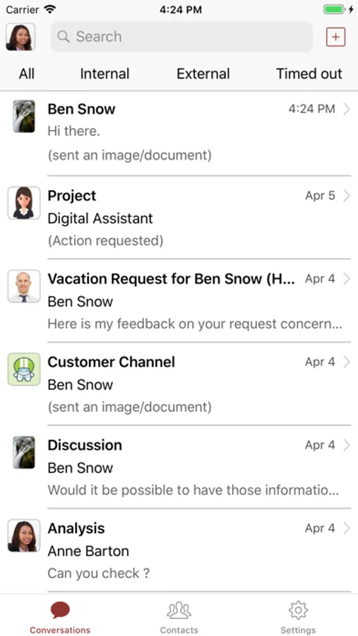 When you can't remember exactly who you were having which conversation with, use the powerful search to find chats, contacts or messages. You'll only find what you're permitted to find and see.