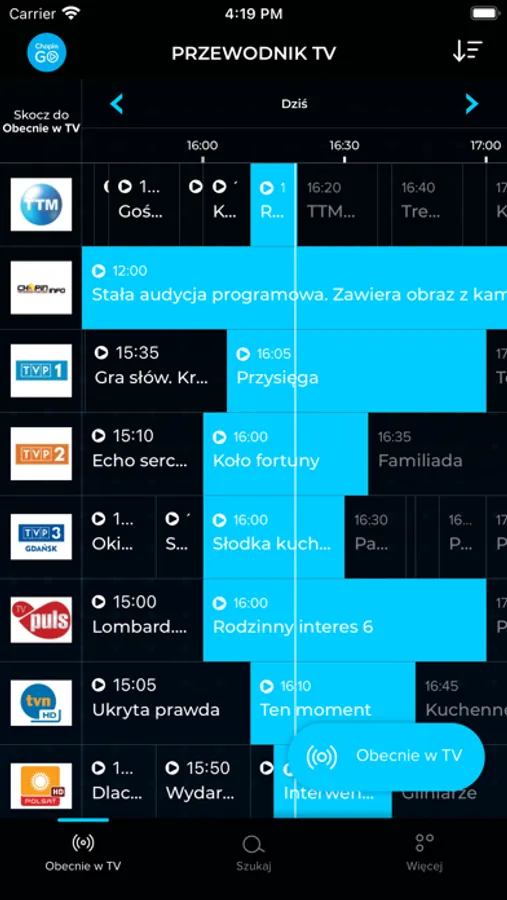 Chopin GO offers access to live TV channels from the Chopin Cable TV offer.