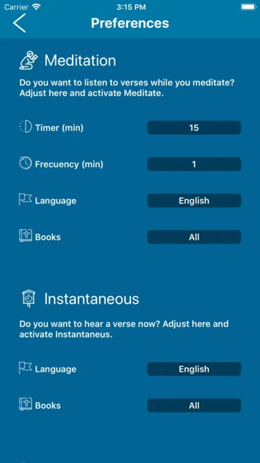- Instant: Touch the screen and it reads a Scripture, two touches to repeat and three to advance to the next.