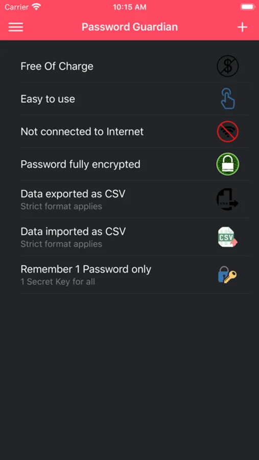 Fear no more! PassGuard is a password management app that helps you keep track and safeguard all your passwords! No matter how long or how complex you have create the password, you can store it in PassGuard and encrypt it with 1 secret key! You do not have to remember 100 passwords anymore! You just have to remember 1 secret key and all the other hassle is taken care of by PassGuard!