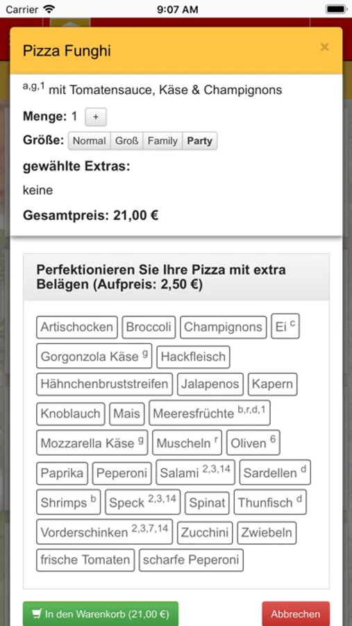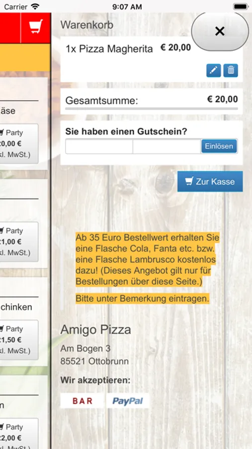 Ab 35 Euro Bestellwert erhalten Sie eine Flasche Cola, Fanta etc. bzw. eine Flasche Lambrusco kostenlos dazu! (Dieses Angebot gilt nur für Bestellungen über diese Seite.)