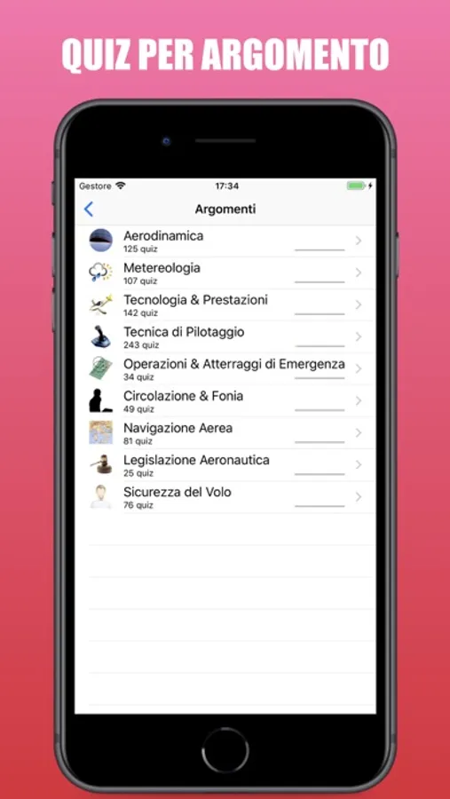 - Quiz per argomento;