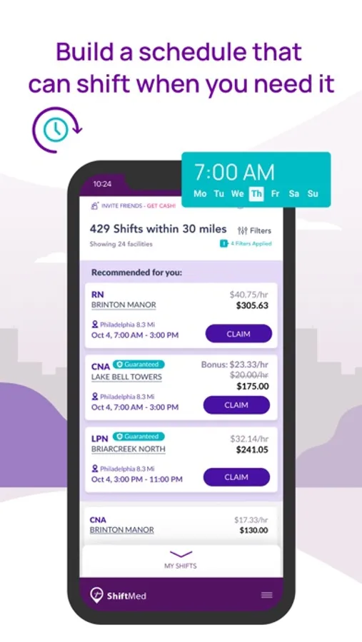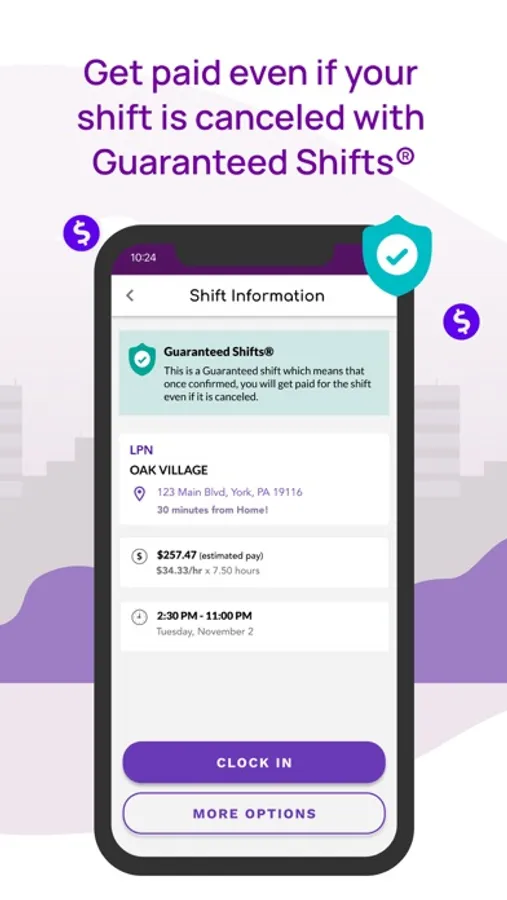 - Claim Guaranteed Shifts® to get paid for the ENTIRE shift if the facility cancels.