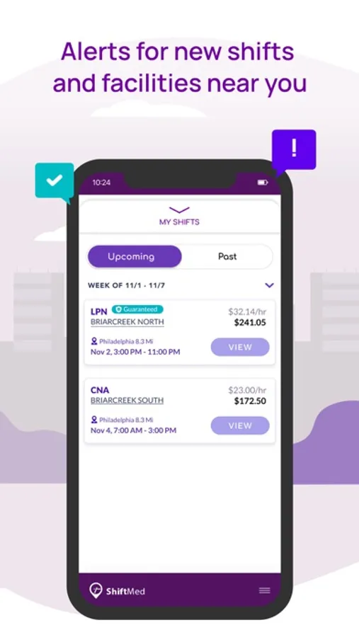 It’s easy to create the ideal work schedule using our nurse staffing app. You can filter your shift feed based on your preferred start time, distance from your home, hourly rate, and even your favorite facility.