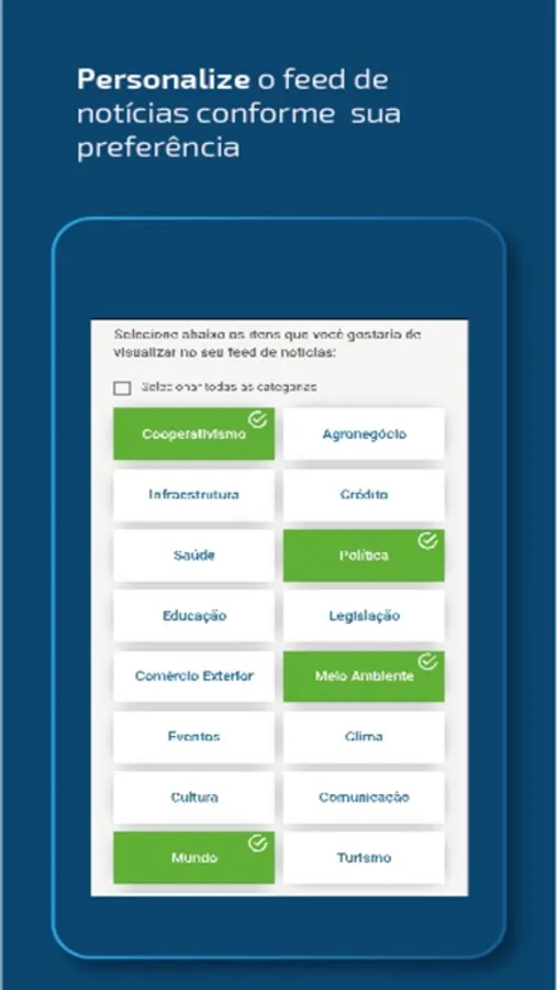Há ainda a possibilidade de personalizar os temas de interesse, com a escolha das categorias de sua preferência. Assim, você poderá manter-se atualizado sobre o que acontece no setor de forma ágil, num click.