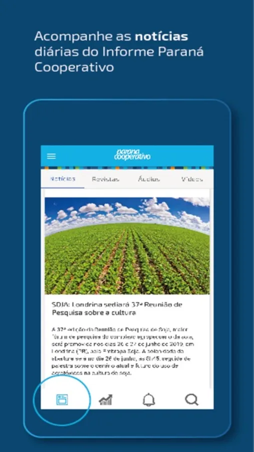 Por meio do aplicativo Paraná Cooperativo (PR Coop News), você fica por dentro dos principais fatos sobre o setor. Fontes e conteúdo de qualidade, com cobertura dos principais eventos, de forma rápida no seu celular – tudo produzido pela equipe de Comunicação Social do Sistema Ocepar.