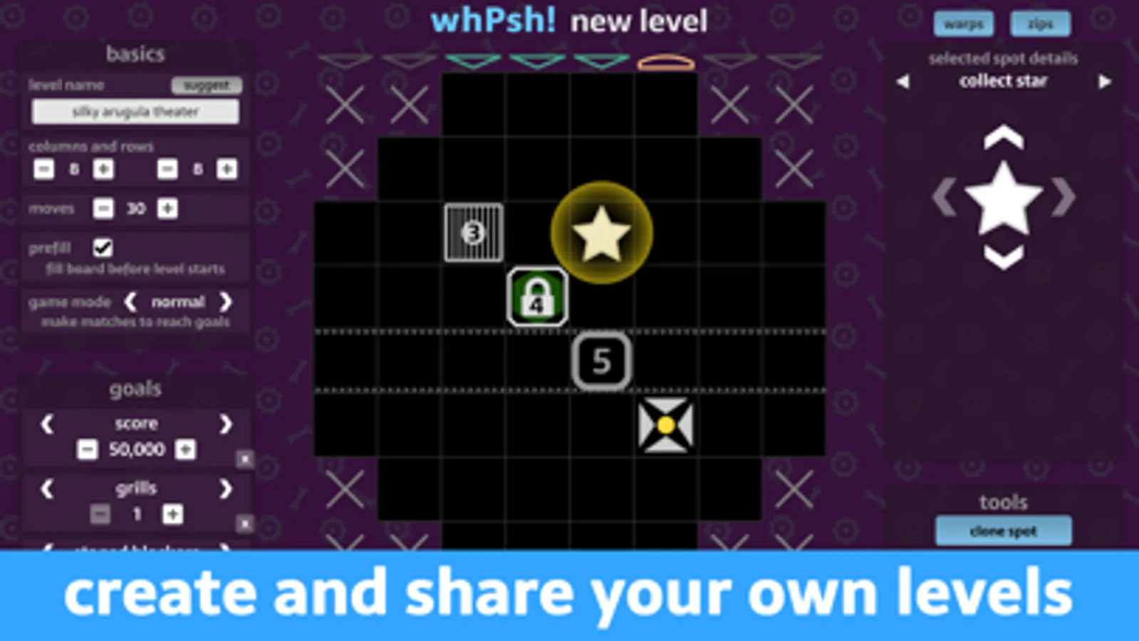 -- We're always working to make the game bigger and better, and we love to hear from our players: use the contact link on our website at ayaguys.com/whpsh to tell us what you'd like to see in whPsh!