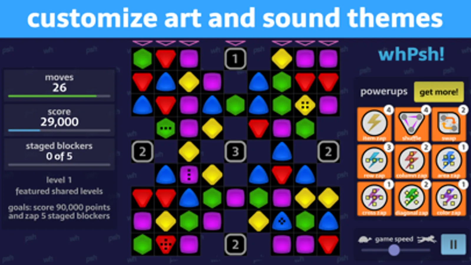 -- Choose from different art and audio themes to customize how the game looks and sounds.