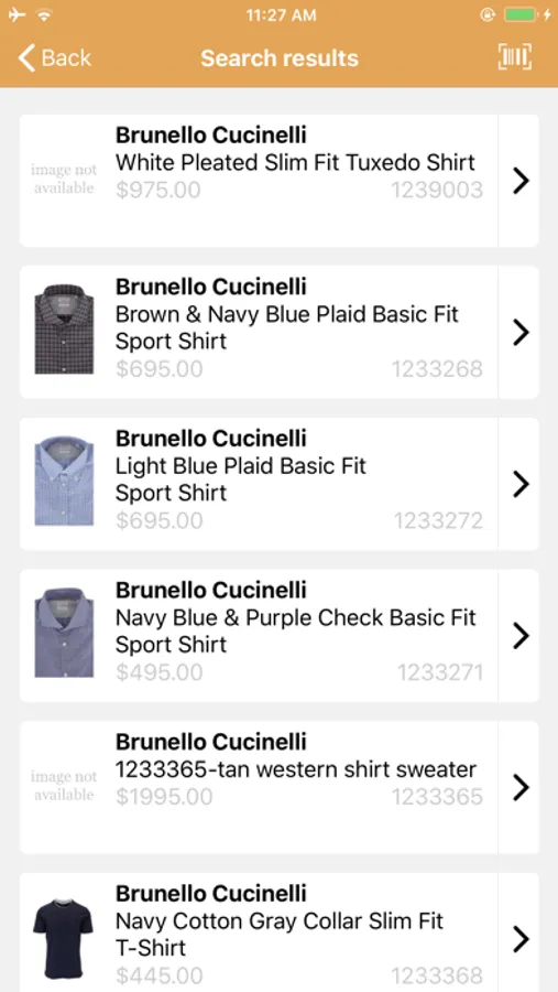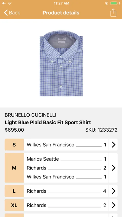Search for products by designer or name, scan barcodes, check inventory, find similar items and other sizes, and email and text products directly from your phone.