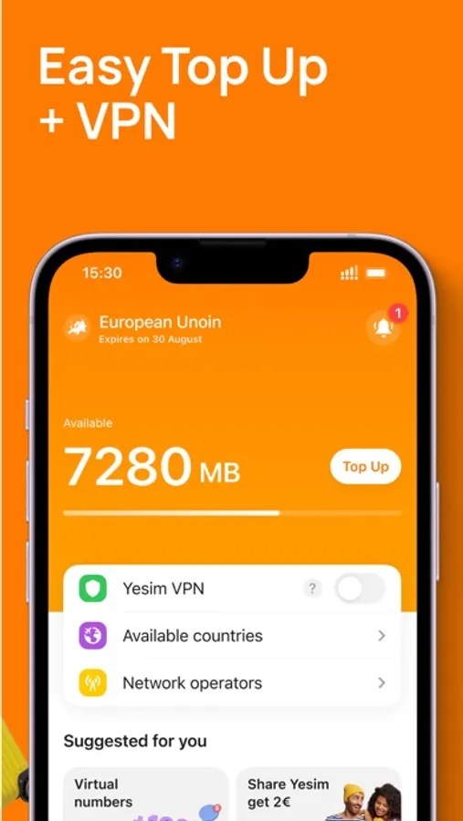 Additionally, with our new feature – virtual phone number, you can receive SMS message verifications or other important communications directly in the Yesim app, without needing an eSIM!