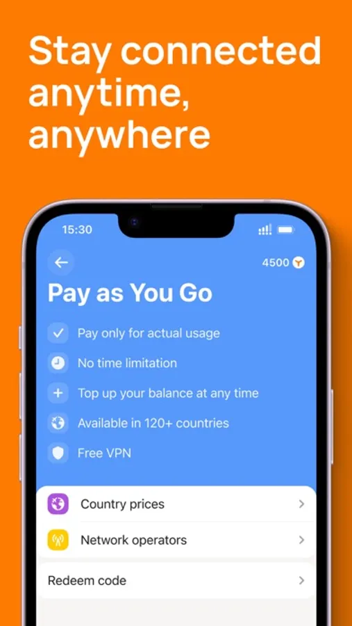 - Easy top-ups, wherever you are;