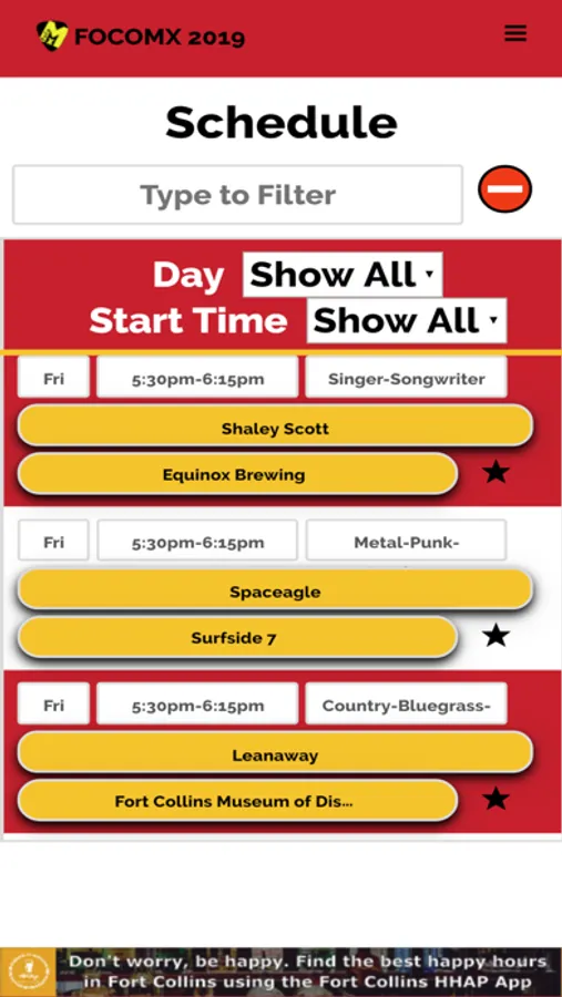 Download the 2019 FoCoMX music festival mobile app. You can view the schedule, read about the bands playing, and listen to sample tracks from the artists. You can also save shows you are interested in to your personal concert schedule to help you get the most out of the festival.