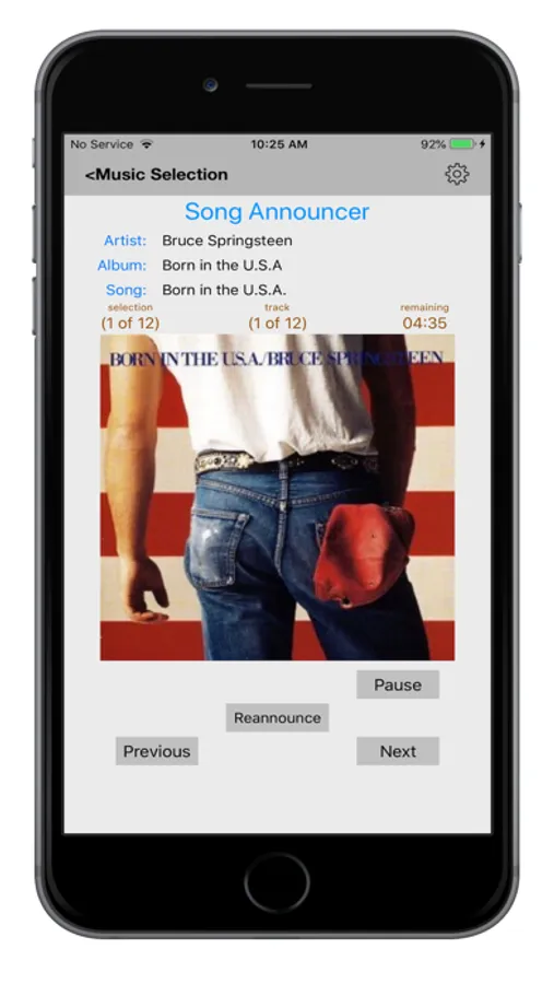 A unique Music Player that announces (speaks) song title, artist name, and album title prior to playing a song.