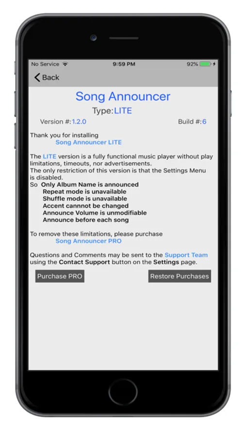 Song Announcer is the ideal music player for those who have a large local user library and use a sound dock or use BlueTooth to stream that music to headphones or an older basic auto sound system without an lcd display.