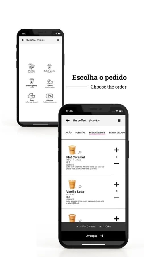 Café é incrível. Nós amamos. A The Coffee é uma cafeteria que respira tecnologia, nada mais prático e vantajoso que pedir através do seu smartphone. No app você pode pedir seu café e retirar na loja, evitando filas e aglomerações, agora também sem sair de casa, escolhendo a opção delivery. É mais prático, rápido e eficiente. O melhor do café brasileiro combinado com a pureza e o perfeccionismo do Japão. Grab and go. Simple.