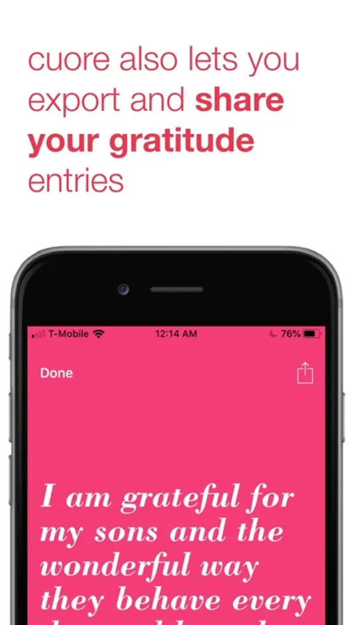 cuore lets you share your gratitude entries as beautifully typeset images so you can send to and share with others in your social networks, or decorate your office or home with them.