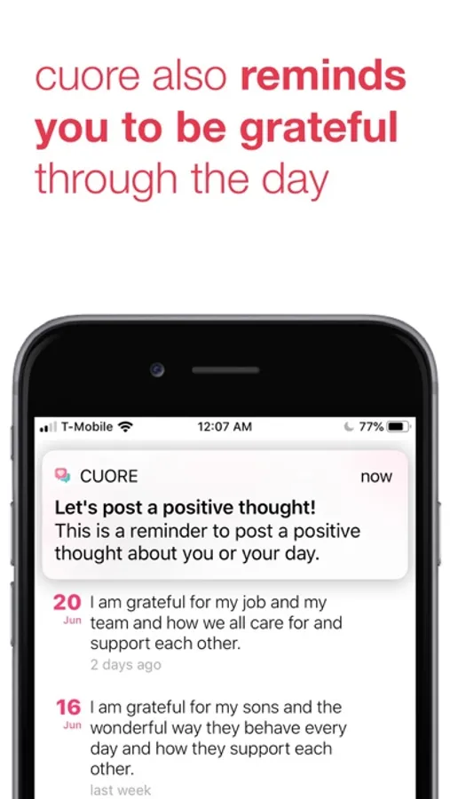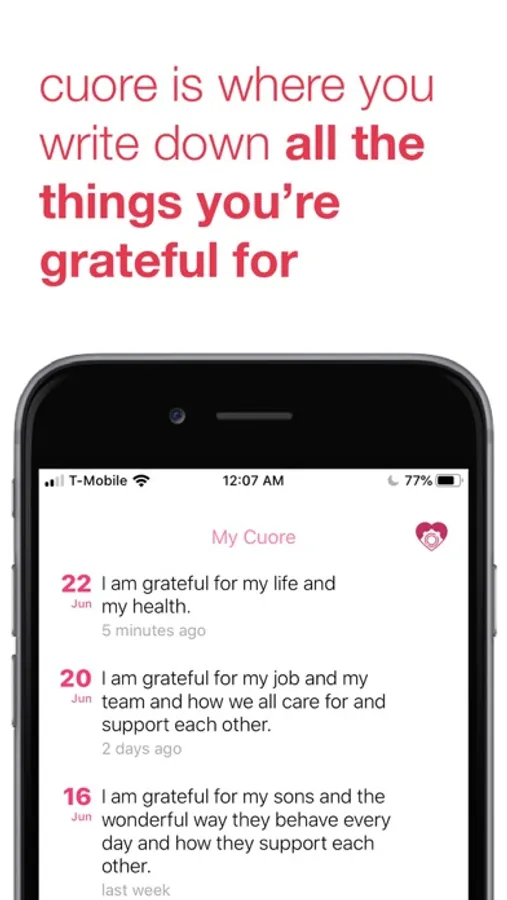 cuore is also a gratitude journal, the place where you can write down all the nice things you’re grateful for, so you can remember them all the time.