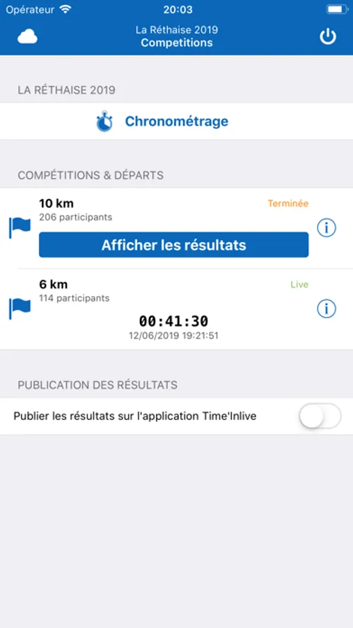 - The dissemination of results on the Internet in real time on the TimeIn'Live application