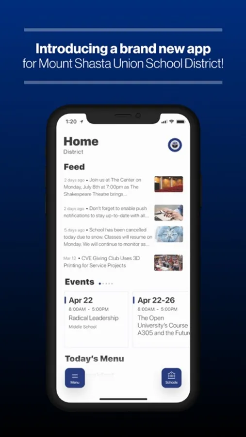 The official app for Mount Shasta USD allows users direct access to the most recent news, announcements and event calendars. Customize the app to display information relevant to a specific campus and to receive important notifications from the district. Users may also access the directory of district faculty and staff, view dining menus, find the location of district events, contact campuses and departments, follow athletic scores and updates, and much more.