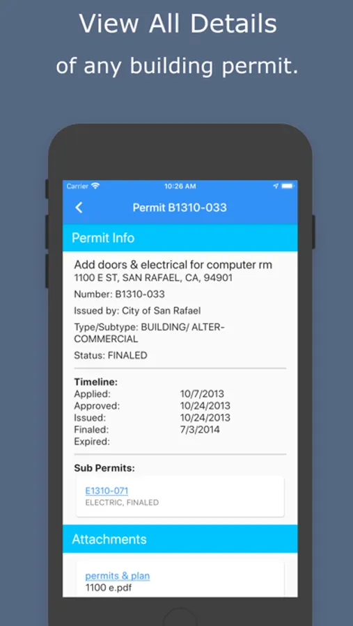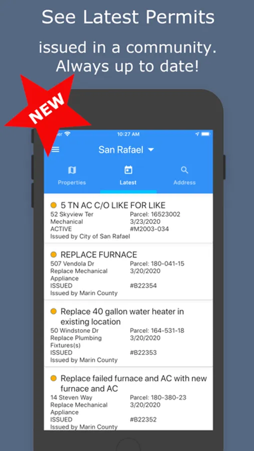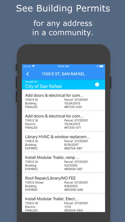 Permits at Hand is a phone app that gives you a convenient way to access public data on building permits issued by most communities in Marin County CA.