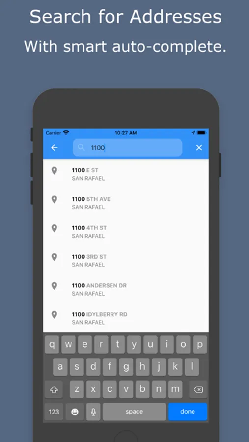 -- Select an address using a map. Using the "my location" feature, select any property near you;
