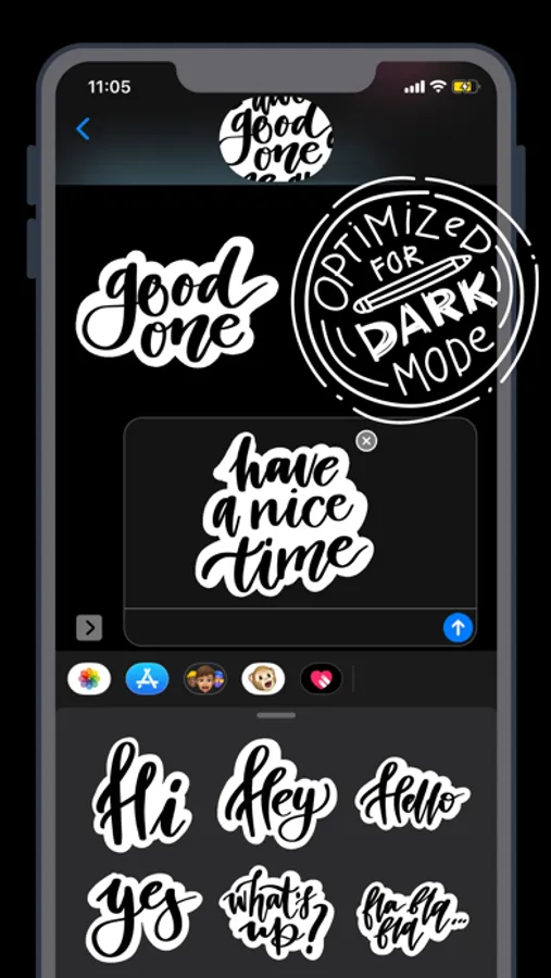 Big set of 45 handwritten stickers for iMessage. Optimized for Dark mode!