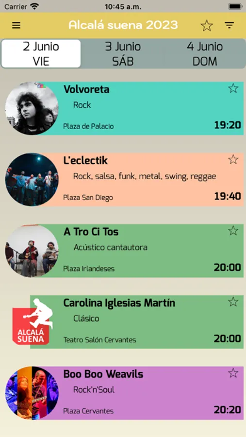 - Conoce toda la programación actualizada de conciertos en cada día y despliega el panel lateral para filtrar por los estilos de música que mas te gustan.