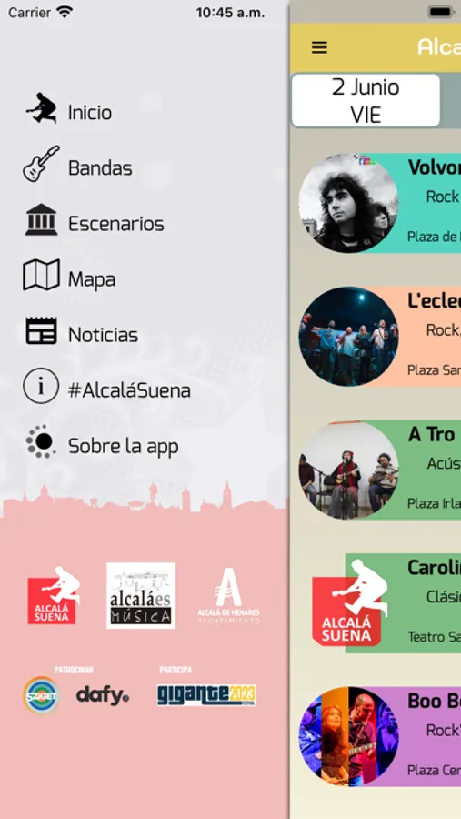 - Navega por el resto de secciones para tener toda la información de Bandas y Escenarios.