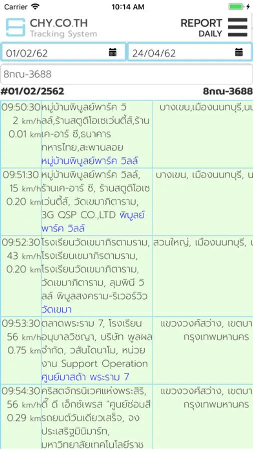 Report history of trip.