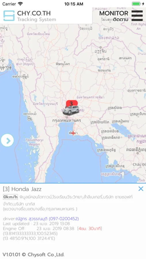 Display location of vehicle realtime.