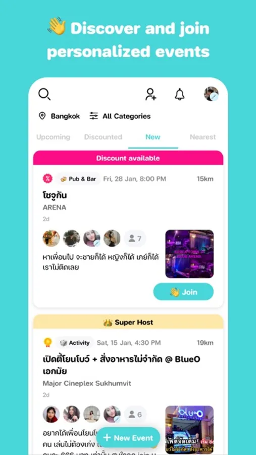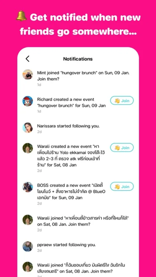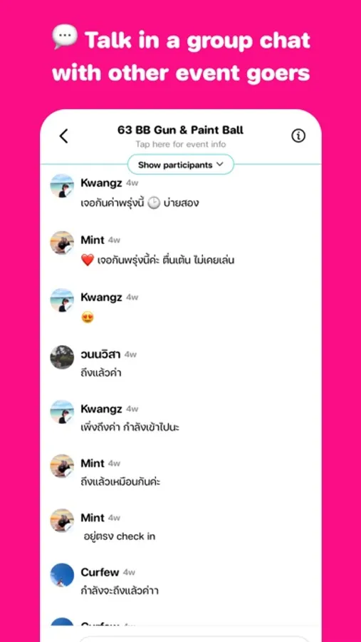 Discover trending events around you, see who’s joining and hop on it right away. No scheduling and planning needed. You can also create your own event and have friends and new people join spontaneously. No more begging the same friends for stuff you wanna do.