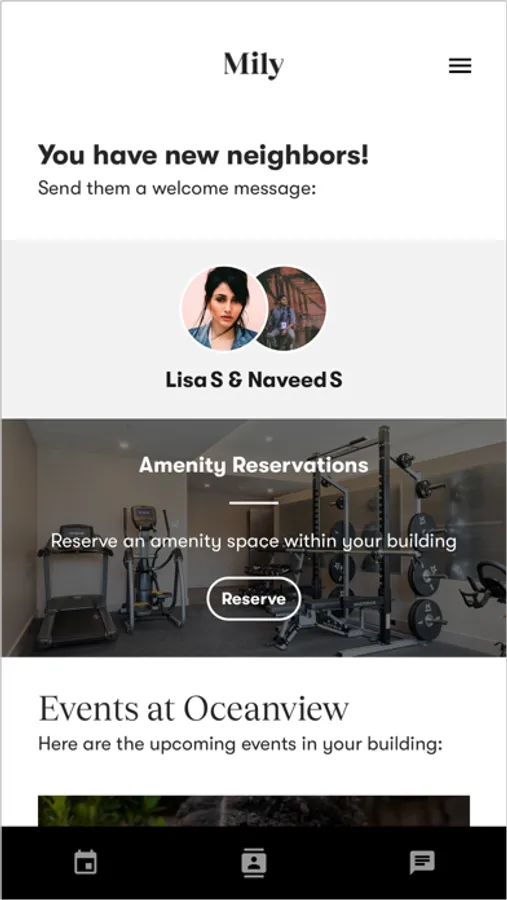 From meeting your neighbors, to creating and RSVPing to events in your building and city, or even booking a babysitter for the night, the Mily app allows you to easily access all the benefits of being a Mily resident.