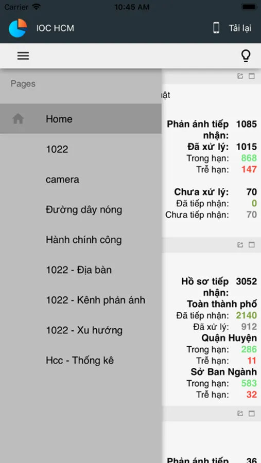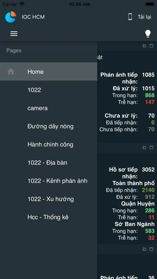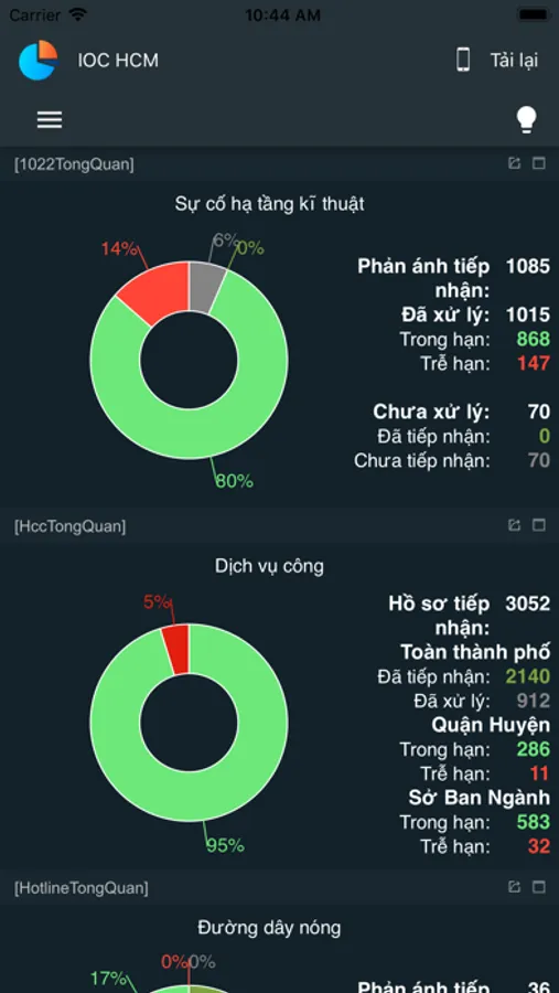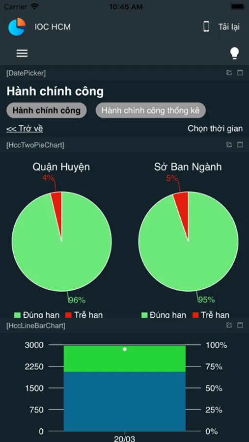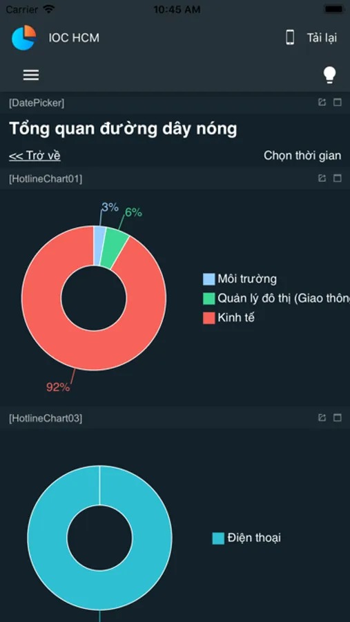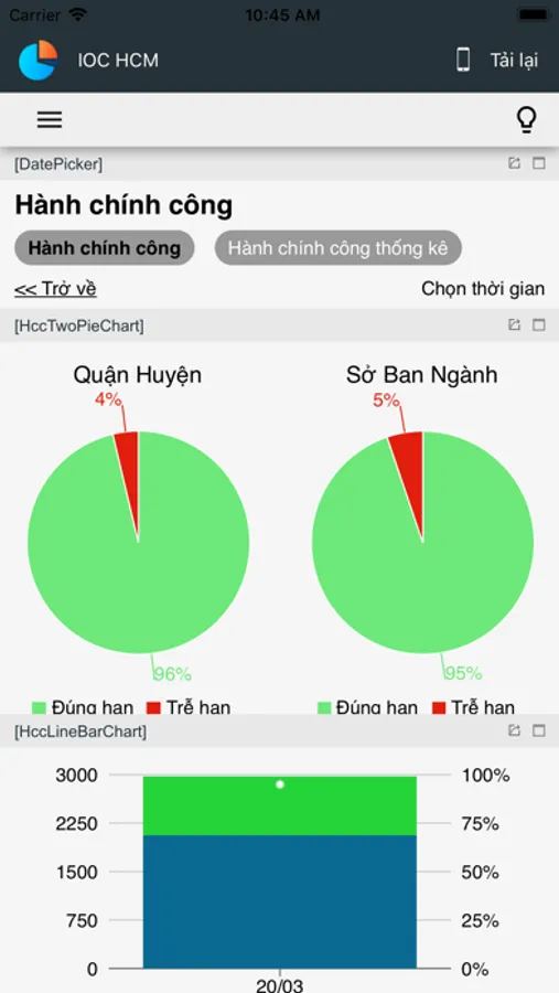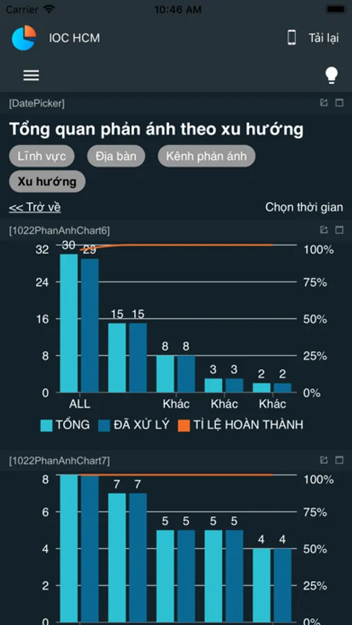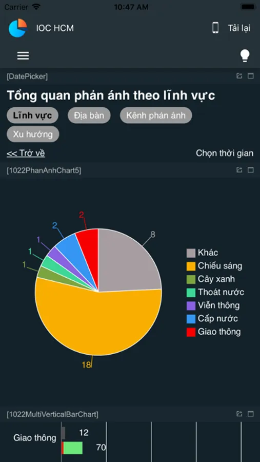 1. Xem báo cáo dạng biểu đồ các lĩnh vực: