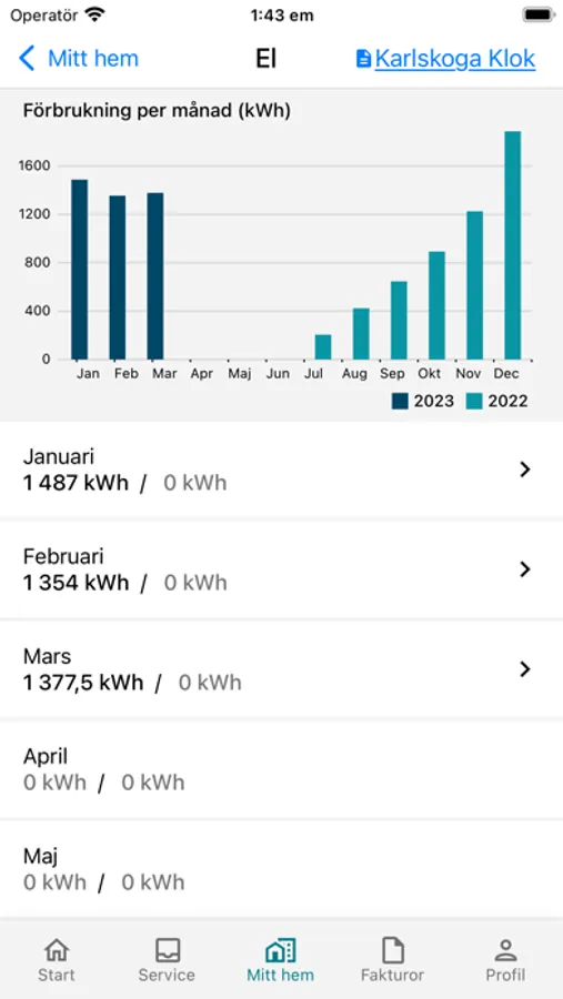 - Se din förbrukning av el- och fjärrvärme på månad, dygn och timbasis.