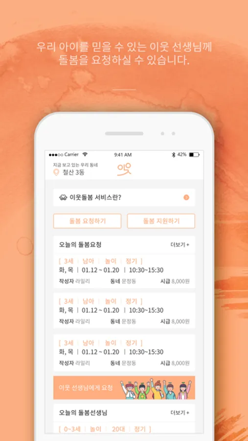 동네인증/실명인증을 통해 믿을 수 있는 나의 이웃에게 아이를 맡겨보세요