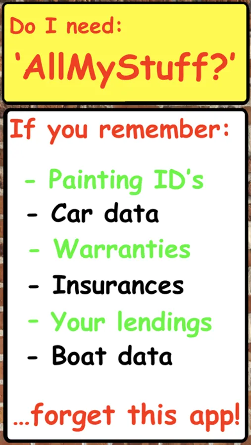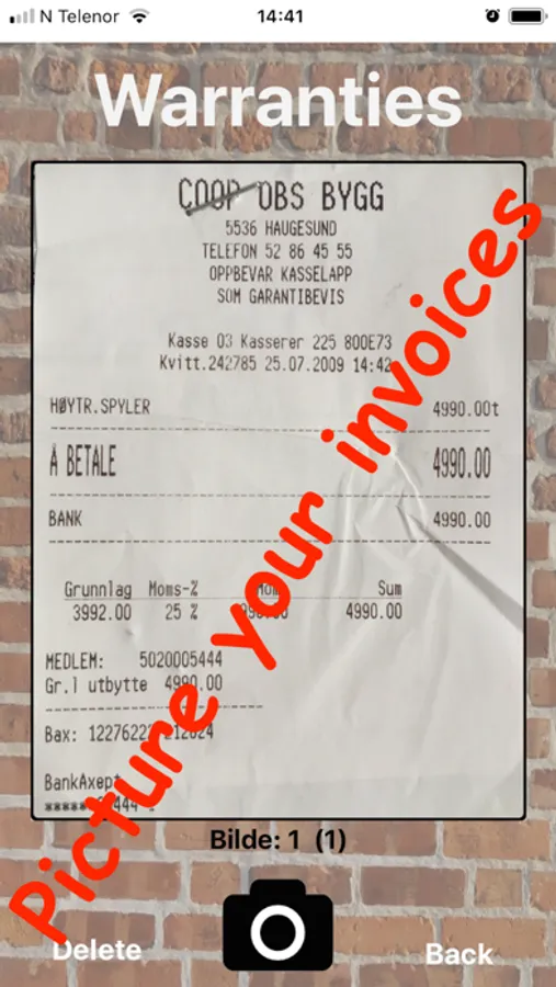 - All your warranties by picture the invoice or speak/write them.